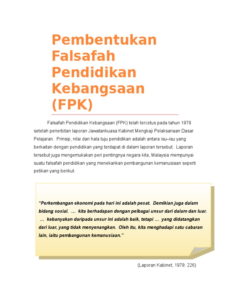 Konsep Falsafah Pendidikan Kebangsaan Fpk Pdf